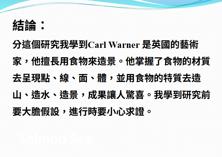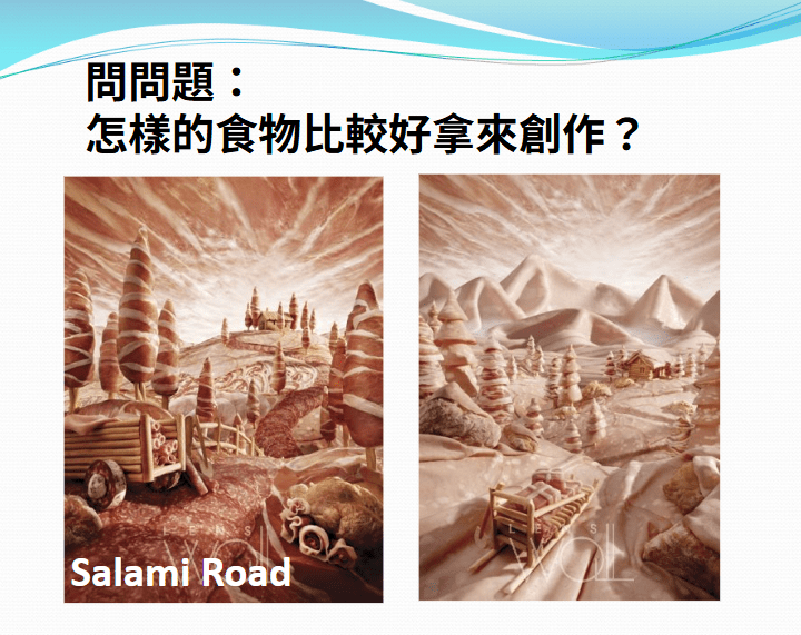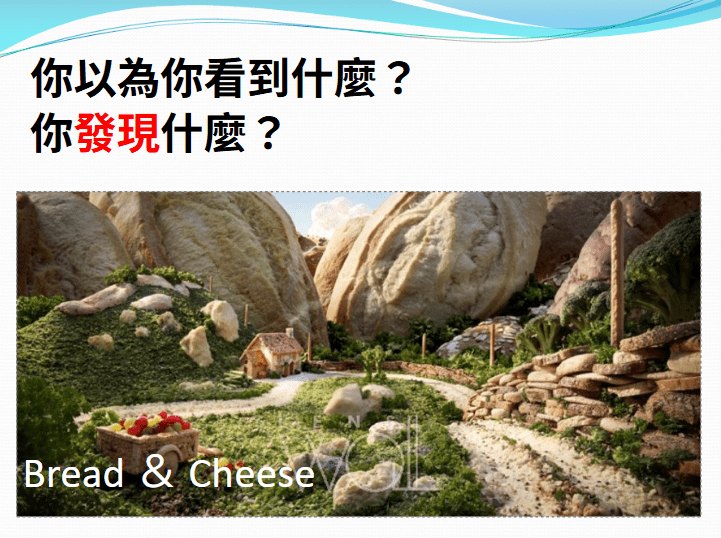 Carl Warner的作品是驚艷,但孫老師真正要孩子看見的,不是畫面裡的食物構圖,而是背後的結構——知識的根,技能的手,品格的魂。