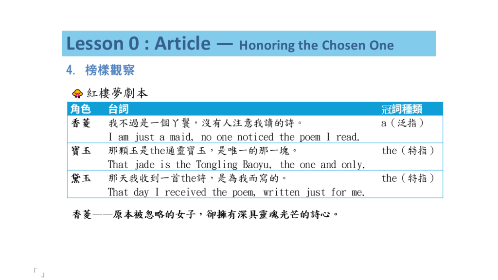 不是因為背誦,而是因為她真的看見了語意的變化。