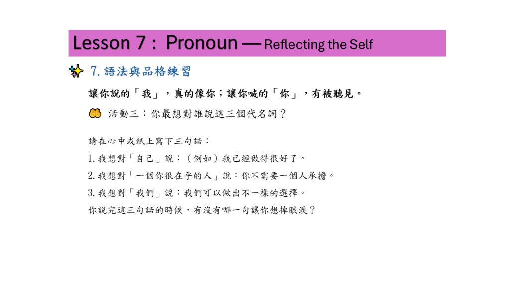 Character–Based English Immersion 雅歌私塾 孫德珍