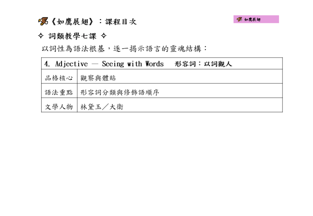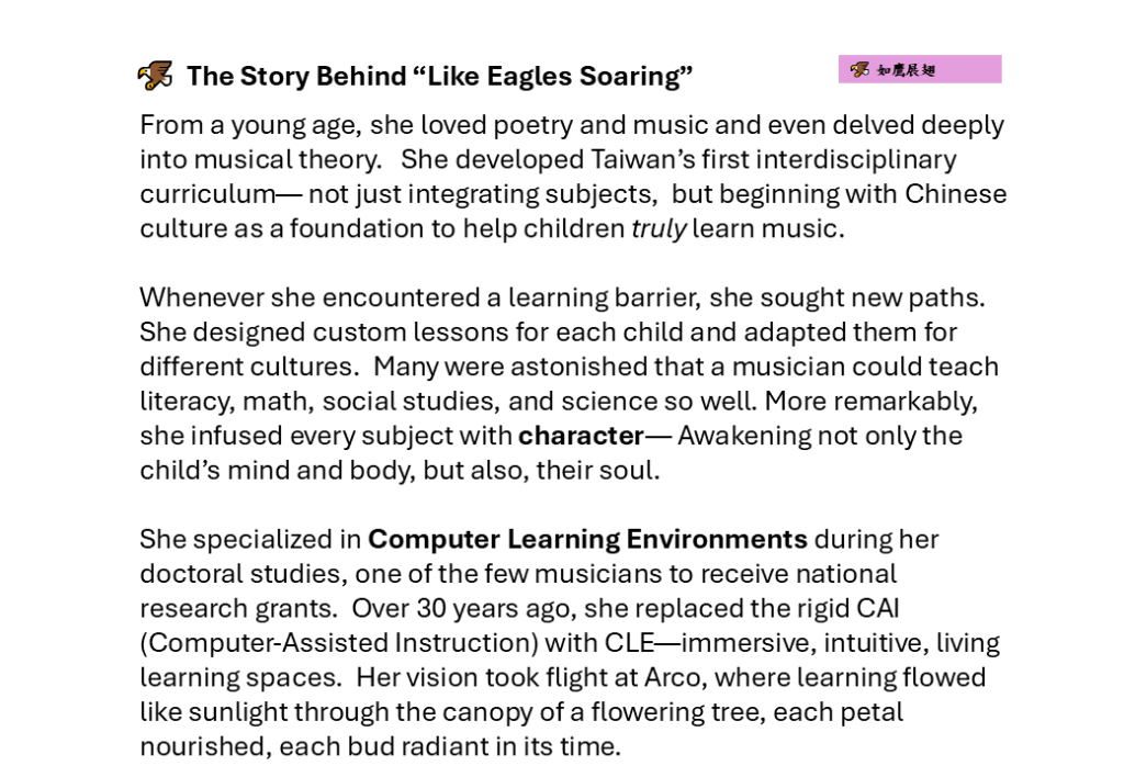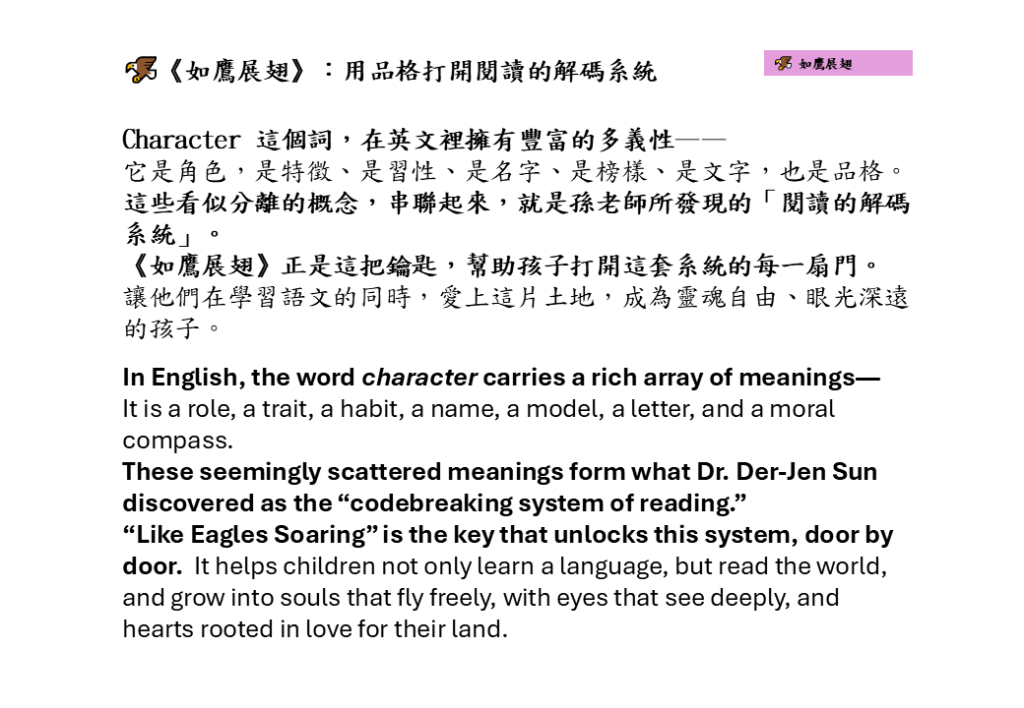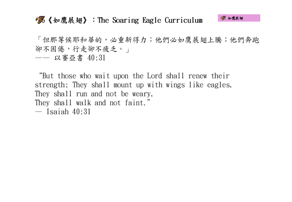 Character-Based English Immersion 雅歌私塾語文浸潤