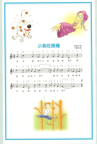 - 指定一位幼兒當小狗,不要讓長耳人知道。遊戲開始時大家一起唱「小狗在那裡」,小狗帶大家做動作。長耳人進入圈中尋找,如果他走近「小狗」,大家要越唱越大聲;長耳人走遠,則越唱越小聲。