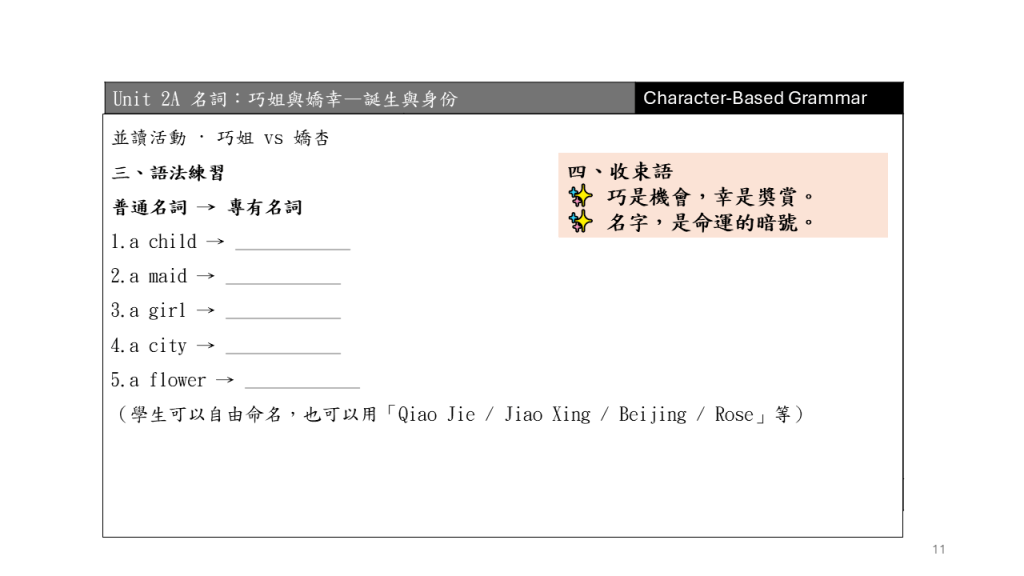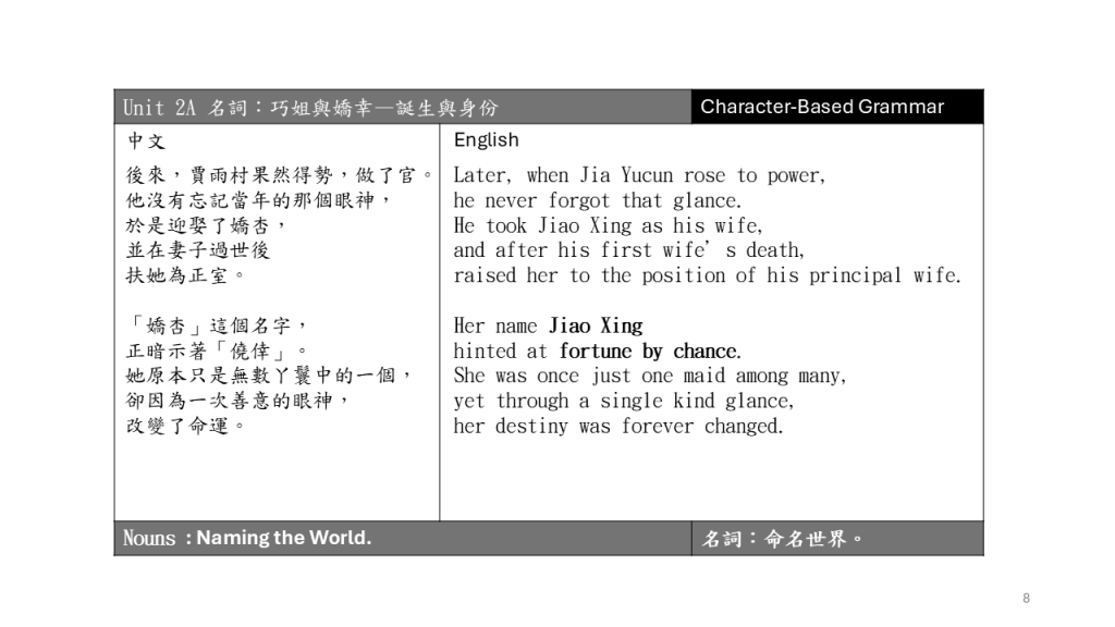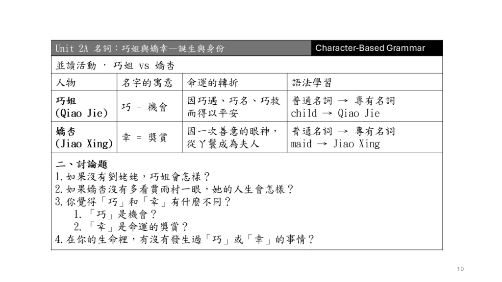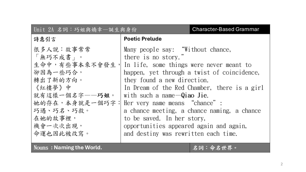 Unit 2A 名詞:巧姐與嬌杏–誕生與身份