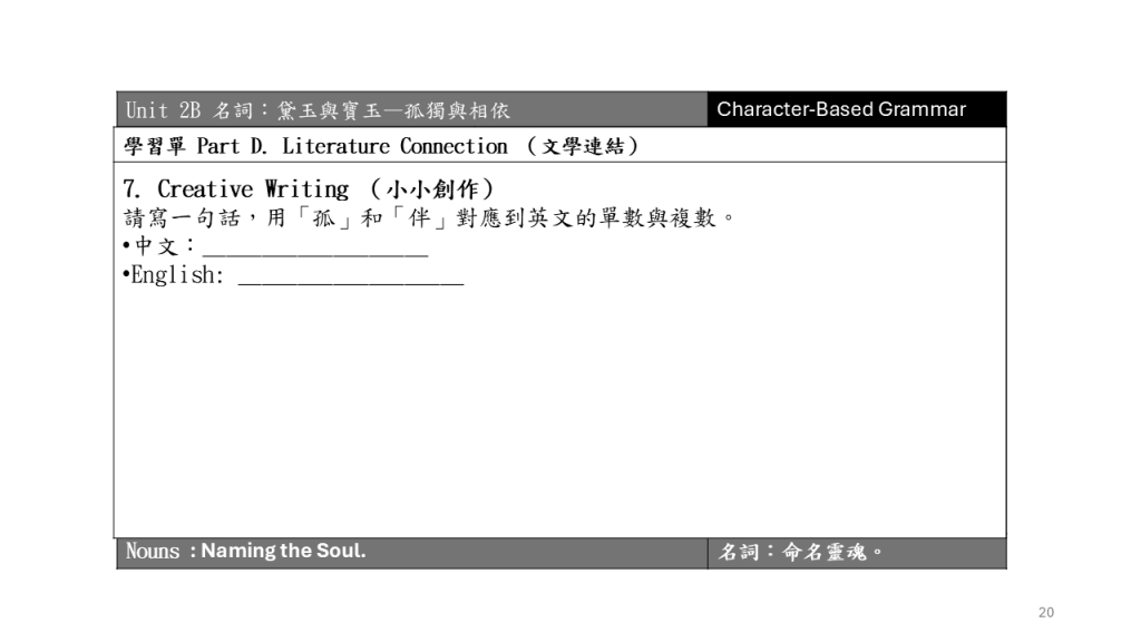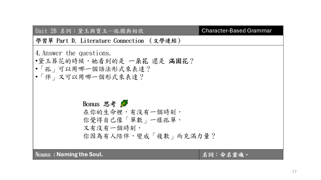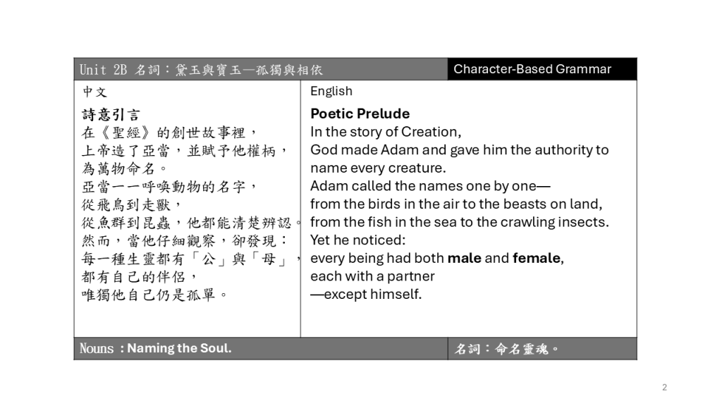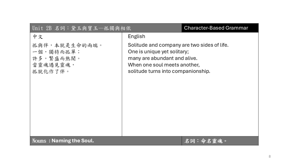 Unit 2B 名詞:黛玉與寶玉–孤獨與相依