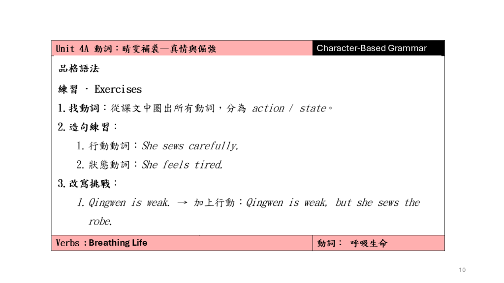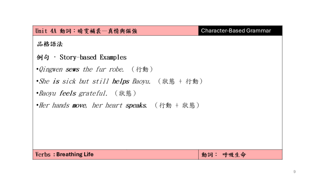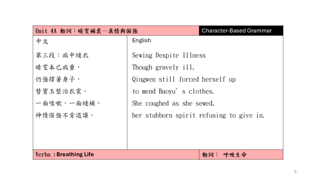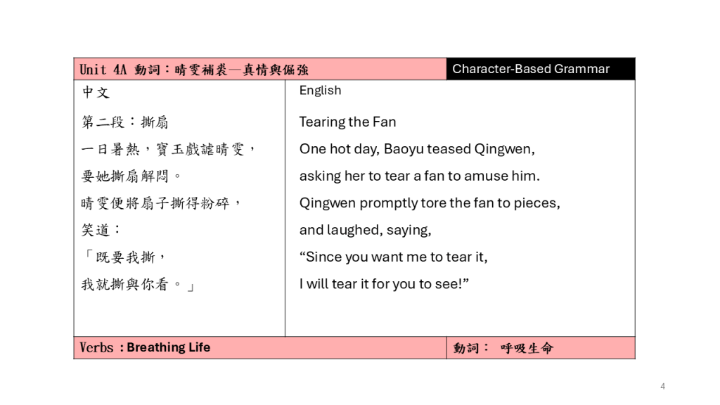 Unit 4A 動詞:晴雯補裘–真情與倔強