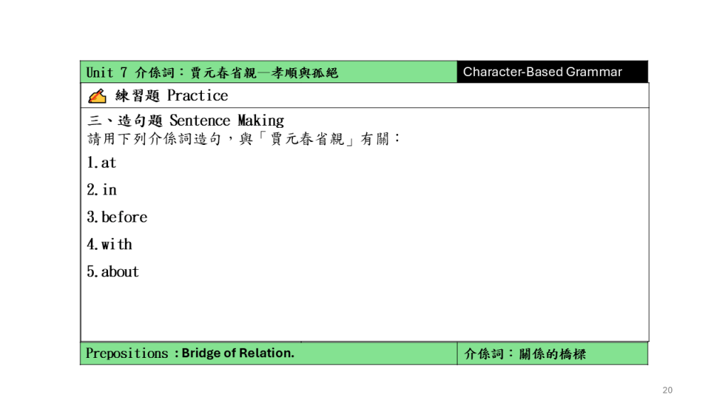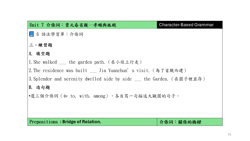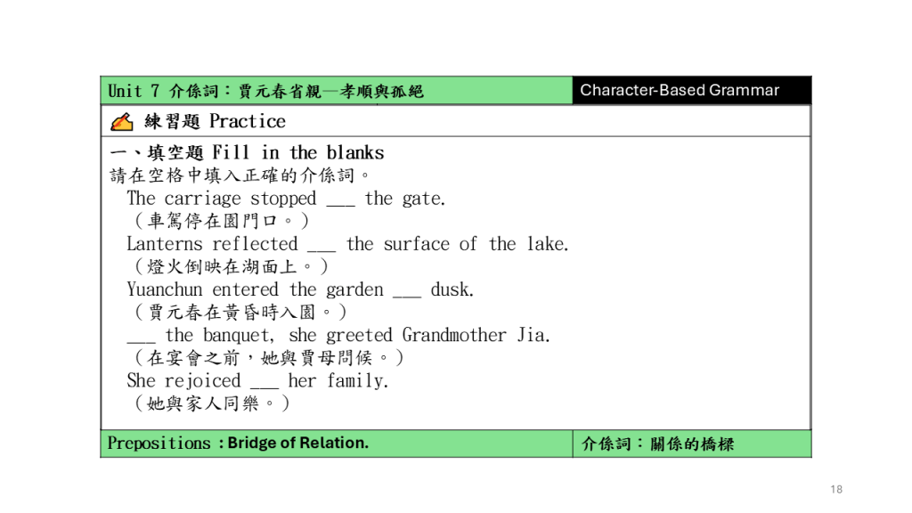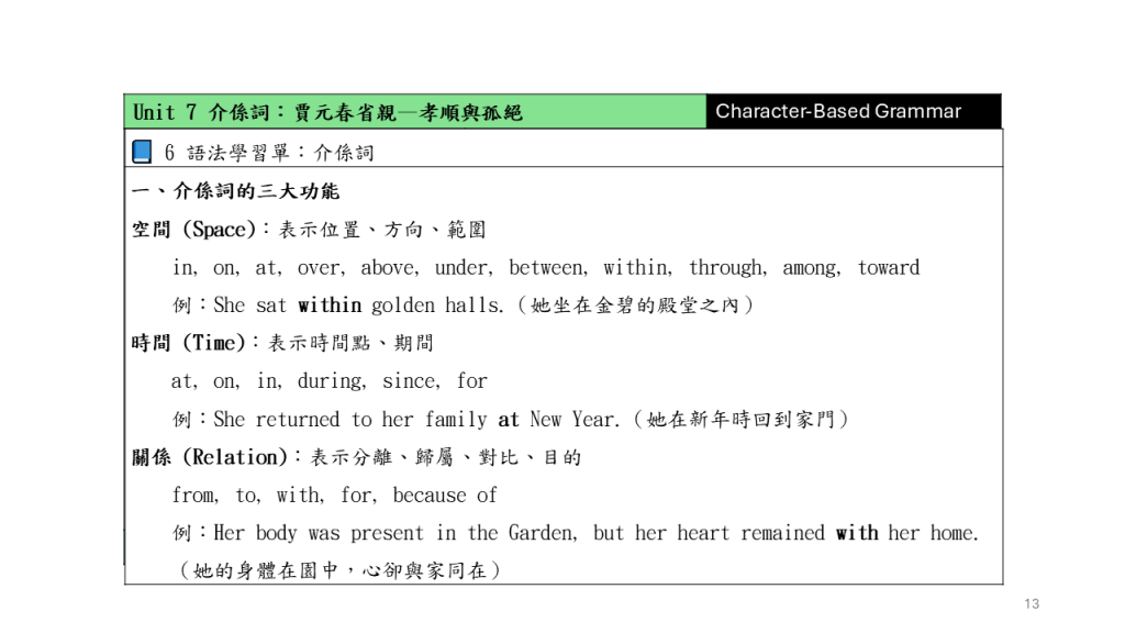 Unit 7 介係詞:賈元春省親–孝順與孤絕