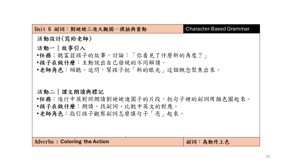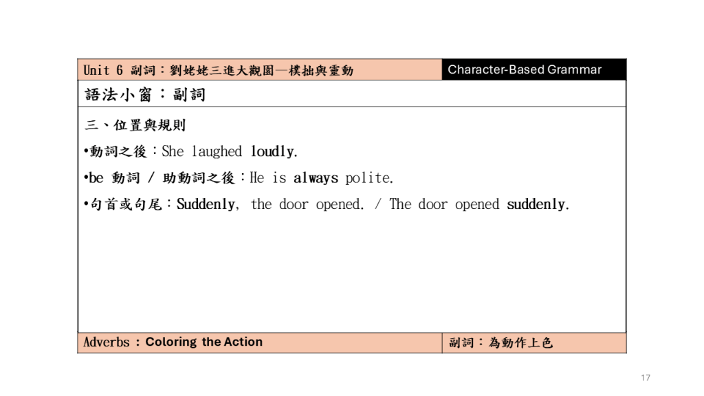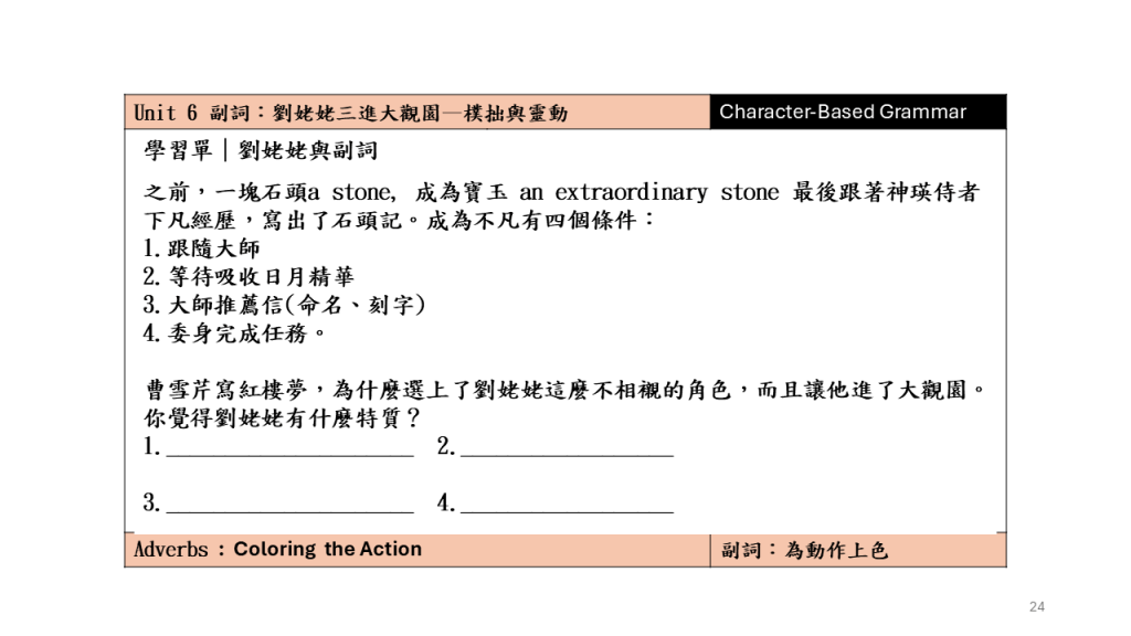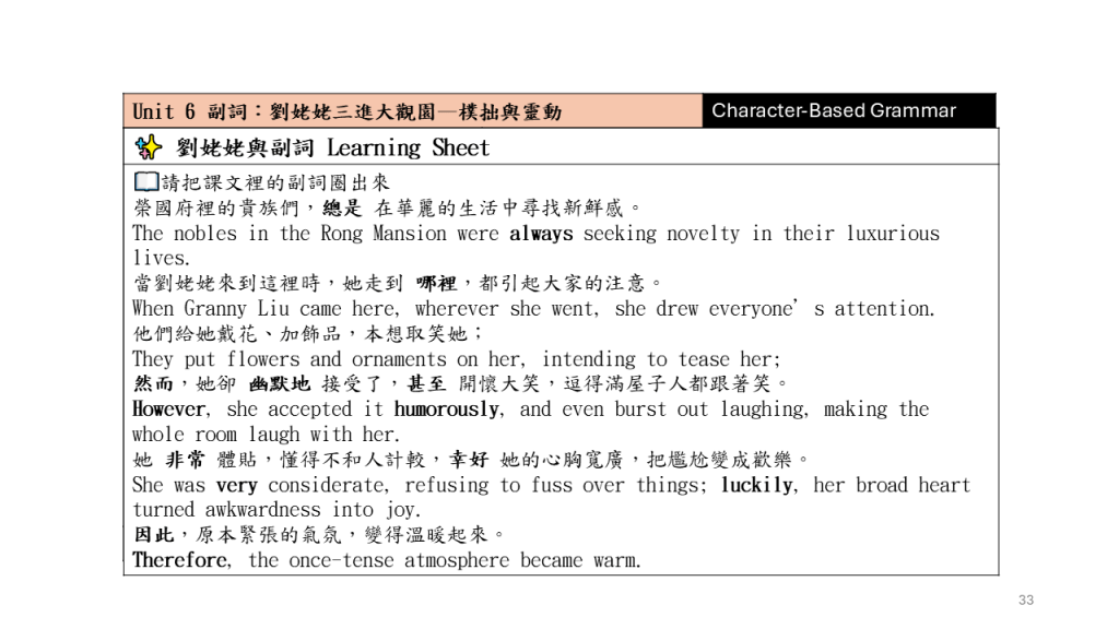 Unit 6 副詞:劉姥姥三進大觀園–樸拙與靈動
