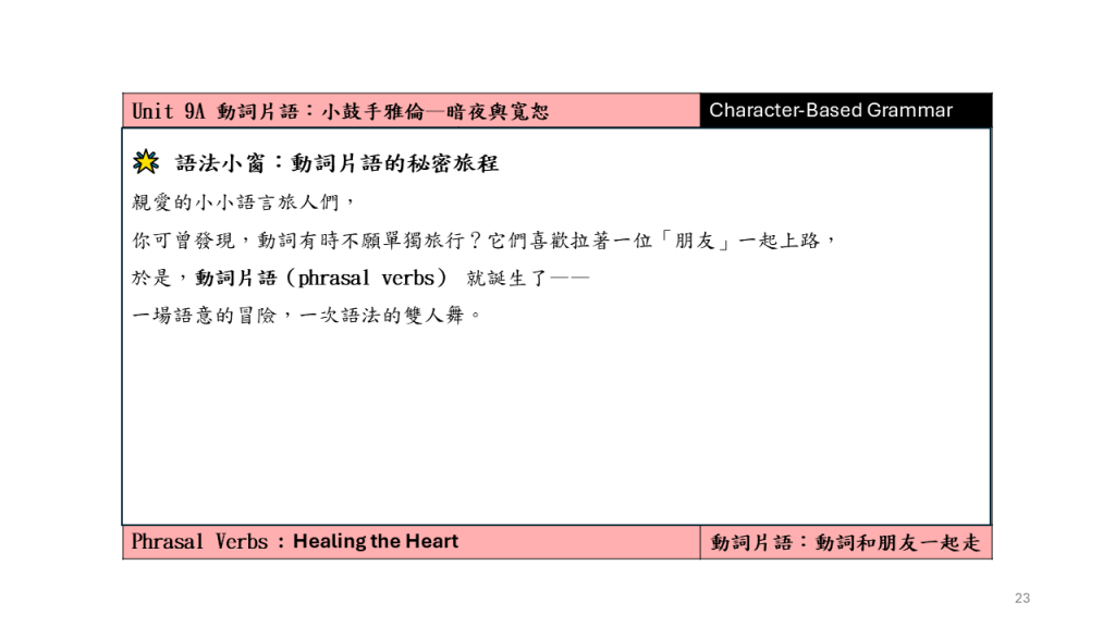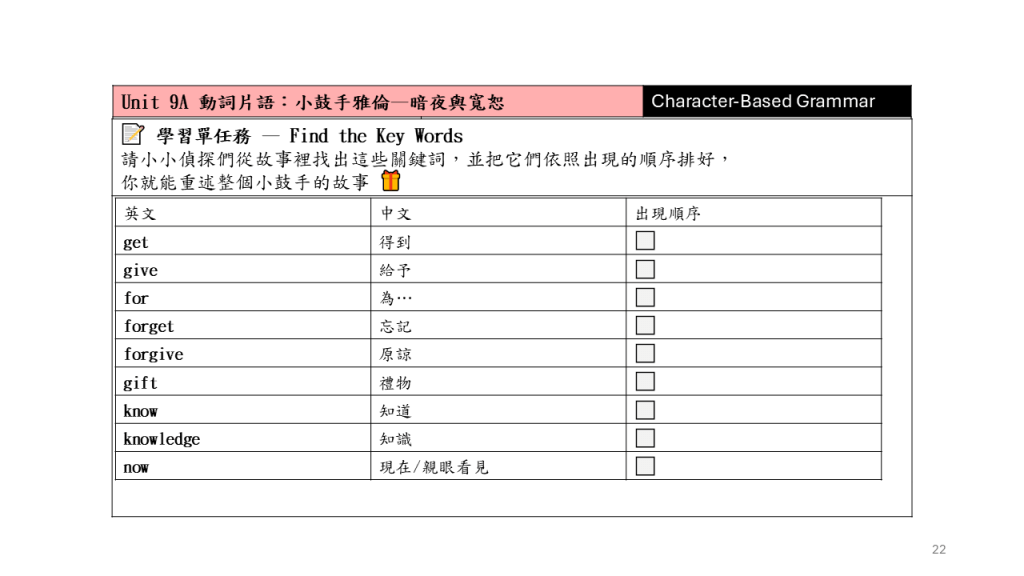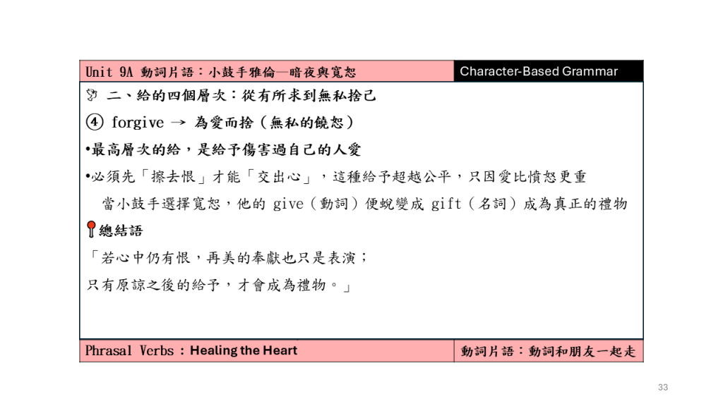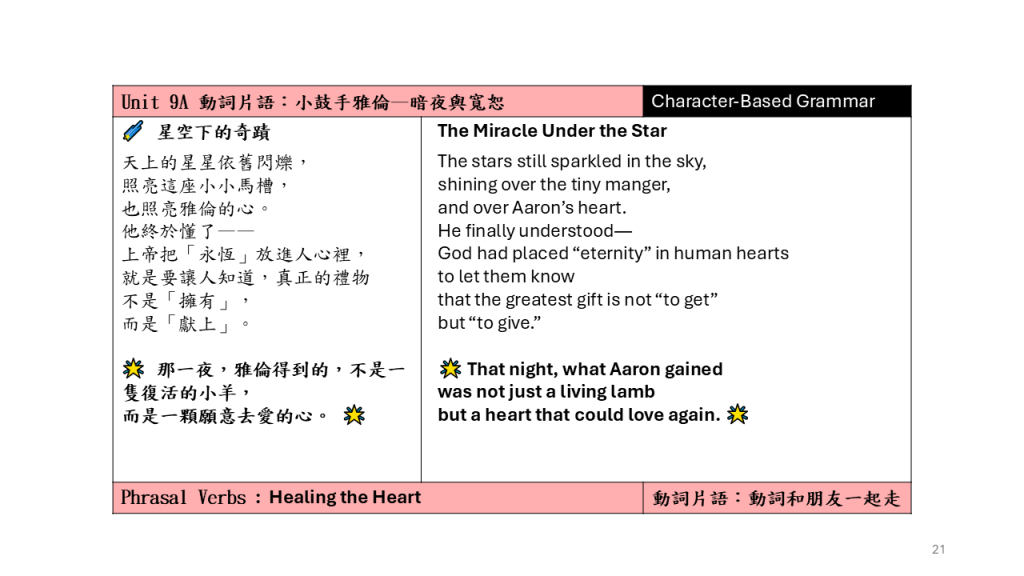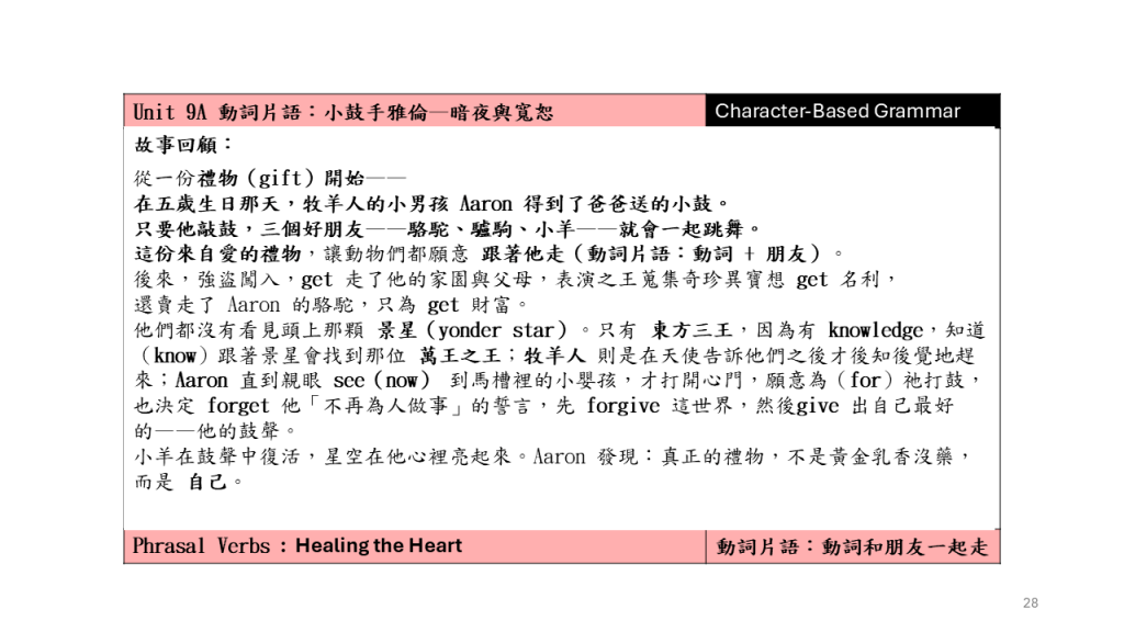 Unit 9A 動詞片語:小鼓手雅倫–暗夜與寬恕