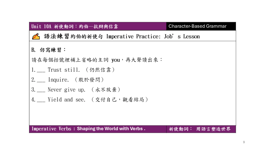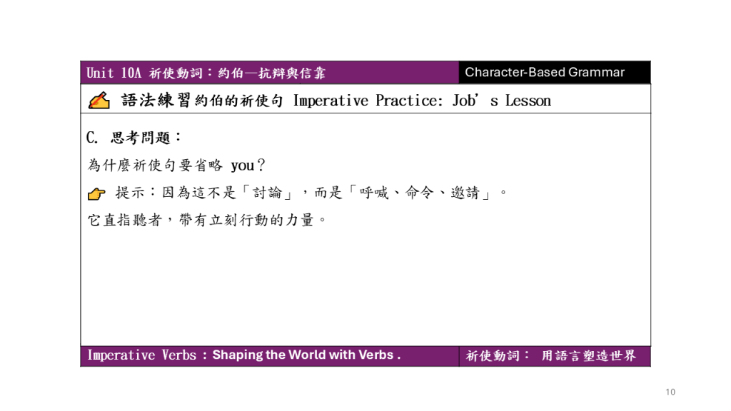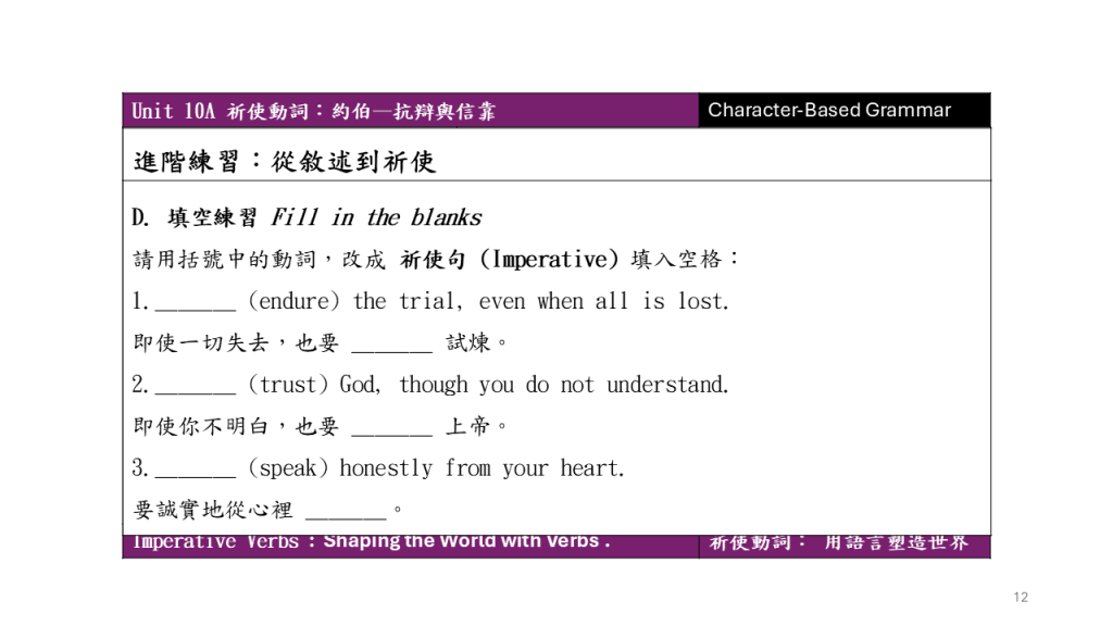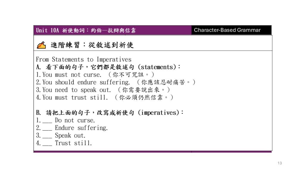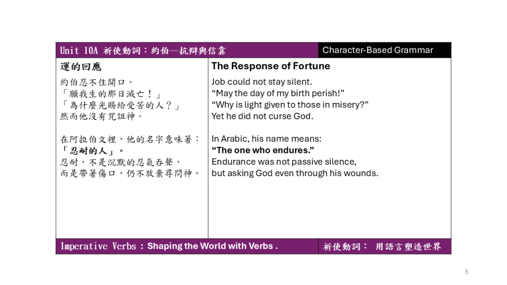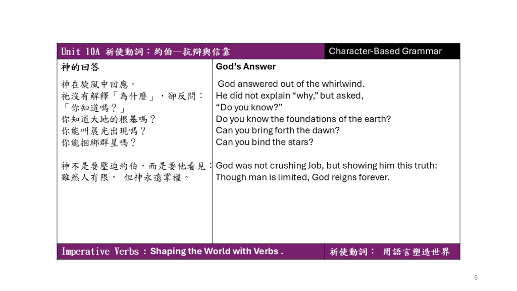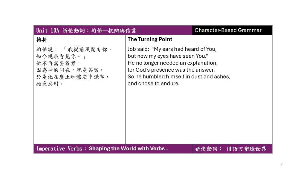 Unit 10A 祈使動詞:約伯–抗辯與信靠