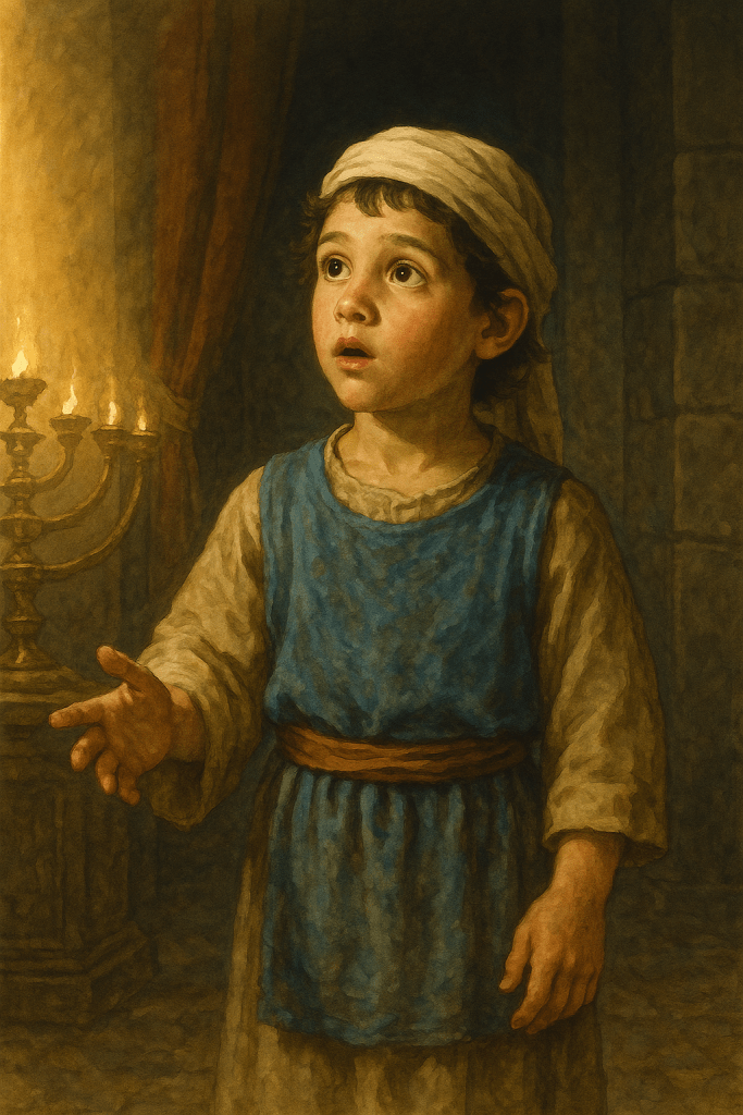 亞倫是一個牧羊人家庭的小男孩。在他五歲生日那天,父親帶回一份禮物——一面特別為他做的小鼓。那天晚上,父親仰望星空,說:「我為你取名叫亞倫,意思是『發光』。願你一生像天上的星星一樣發光。」