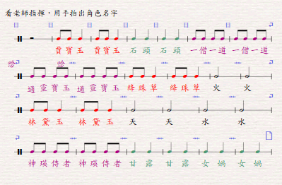 跟老師指揮,用中文名字唸出節奏(依字數拍擊)