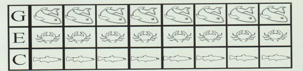 大女兒說:「那要來考考他啊。」她拿了三片音磚:F、A、C,請郵差把眼睛閉好。大女兒說:
